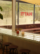 Take the train or drive through the quiet backroads of Zandvoort, passing wind-blown grasses and golden light. When you arrive at Piatti, you step onto a soft wooden deck surrounded by olive trees and the hum of Italian classics in the background. Inside, the interiors are a mix of stylish pieces and vintage touches. It feels like it’s been there forever, in the best way.